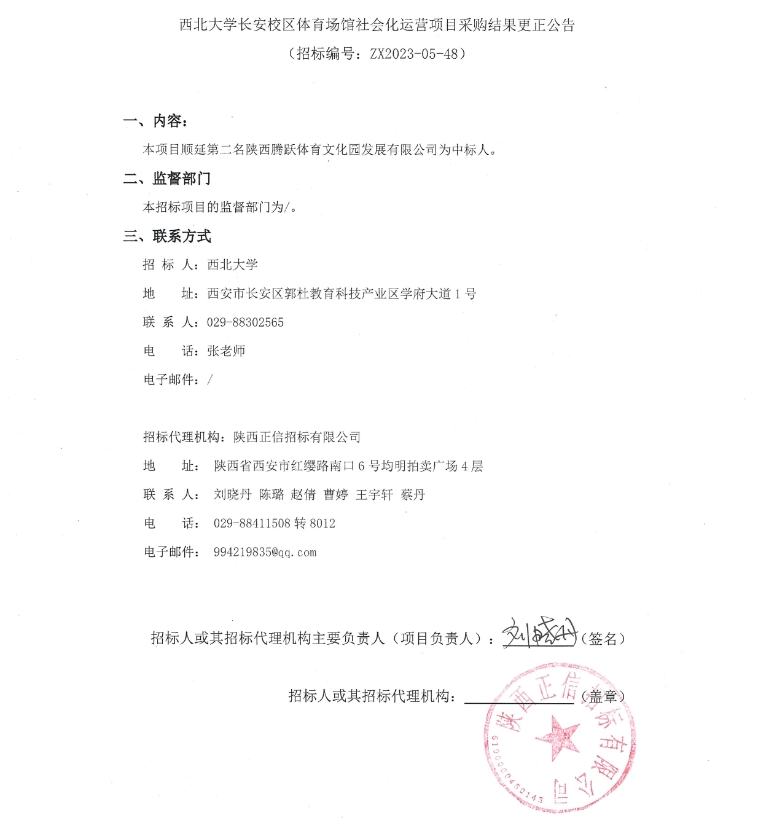 MILAN.COM长安校区体育场馆社会化运营项目采购结果更正公告