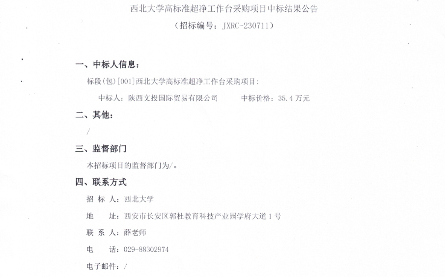 MILAN.COM高标准超净工作台采购项目中标结果公告 作者: 编辑:采购与招标办公室 时间:2023-09-07 原公告链接:http://bulletin.sntba.com/resultBulletin/2023-09-07/651529.html