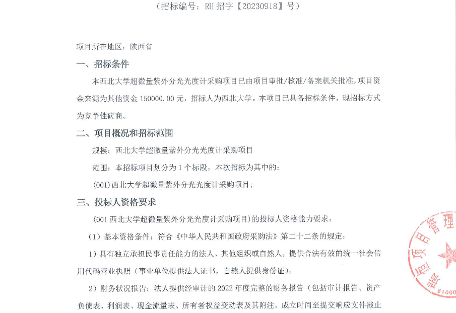 MILAN.COM超微量紫外分光光度计采购项目竞争性磋商公告 作者: 编辑:采购与招标办公室 时间:2023-09-22 原公告链接:http://bulletin.sntba.com/biddingBulletin/2023-09-22/680812.html