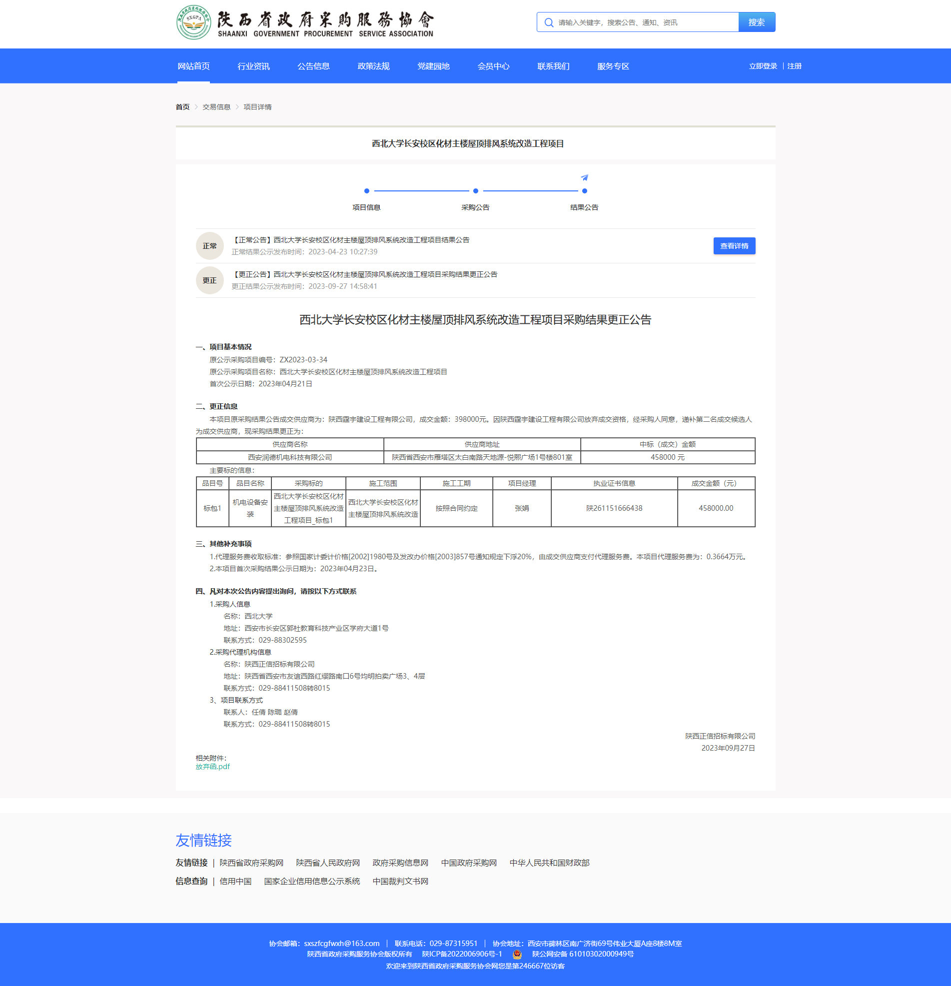 MILAN.COM长安校区化材主楼屋顶排风系统改造工程项目采购结果更正公告