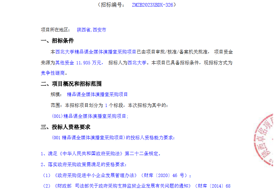 MILAN.COM精品课全媒体演播室采购项目竞争性磋商公告 作者: 编辑:采购与招标办公室 时间:2023-10-24 原公告链接:http://bulletin.sntba.com/biddingBulletin/2023-10-23/749879.html