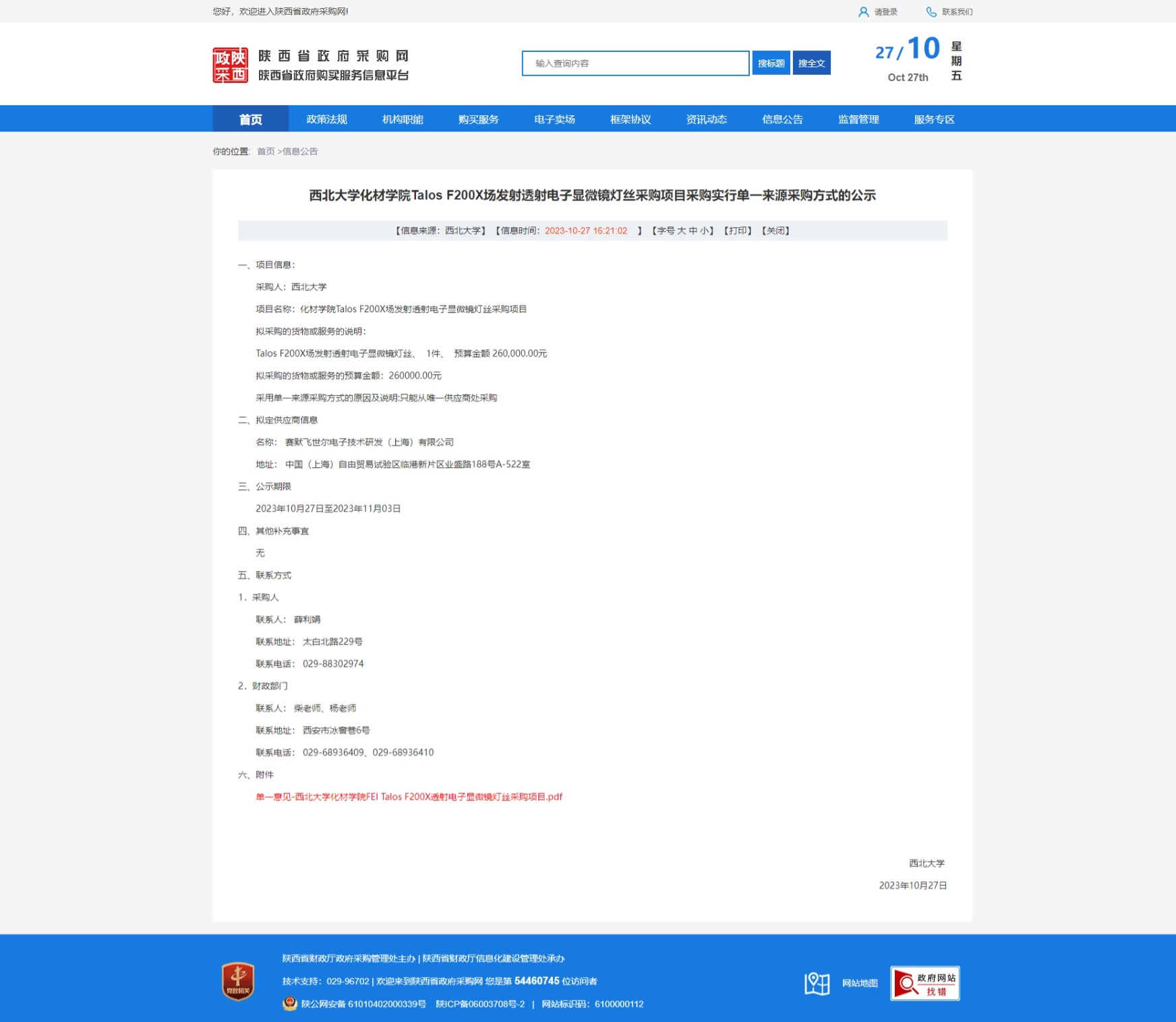 MILAN.COM化材学院Talos F200X场发射透射电子显微镜灯丝采购项目采购实行单一来源采购方式的公示 作者: 编辑:采购与招标办公室 时间:2023-10-27 原公告链接:http://www.ccgp-shaanxi.gov.cn/freecms/site/shaanxi/ggxx/info/2023/8a69c1288b6f04ea018b7035835c48ea.html?noticeType=001051¬iceId=11c24886-74a3-11ee-9a8e-08c0eb20c666