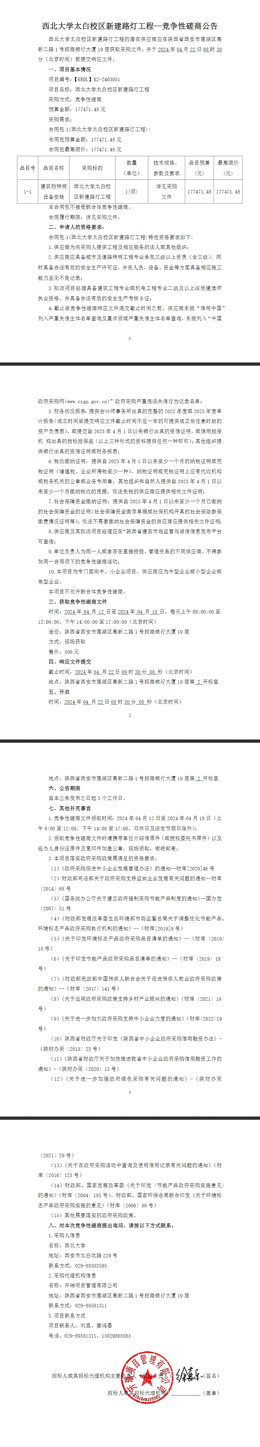 MILAN.COM太白校区新建路灯工程竞争性磋商公告