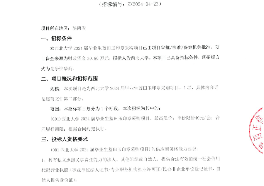 MILAN.COM2024届毕业生蓝田玉印章采购项目竞争性磋商公告 作者: 编辑:采购与招标办公室 时间:2024-04-16 原公告链接:http://bulletin.sntba.com/biddingBulletin/2024-04-16/1309683.html
