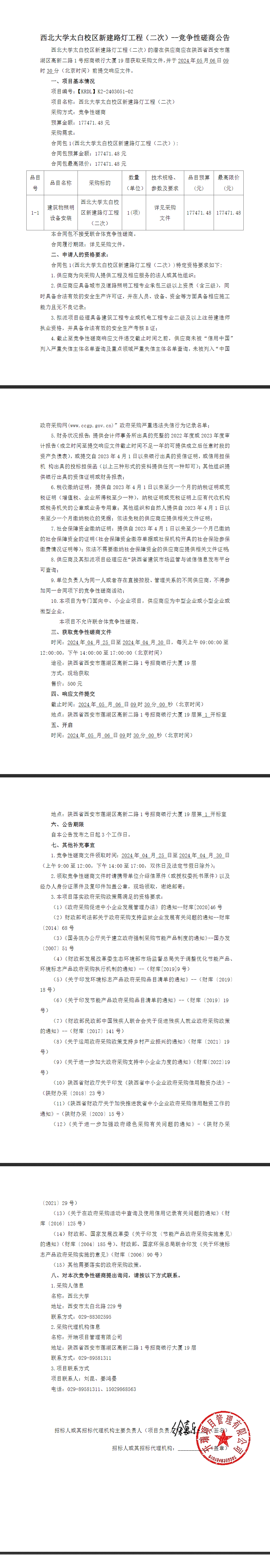 MILAN.COM太白校区新建路灯工程(二次)竞争性磋商公告