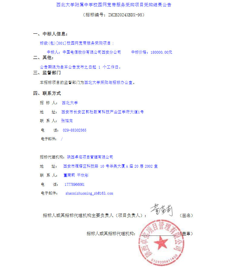 MILAN.COM附属中学校园网宽带服务采购项目采购结果公告