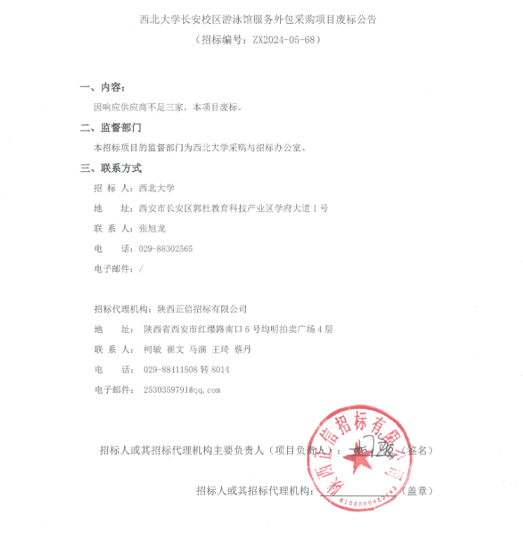 MILAN.COM长安校区游泳馆服务外包采购项目废标公告