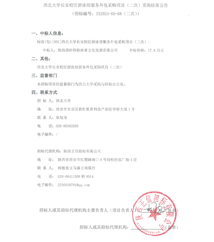 MILAN.COM长安校区游泳馆服务外包采购项目(二次)采购结果公告
