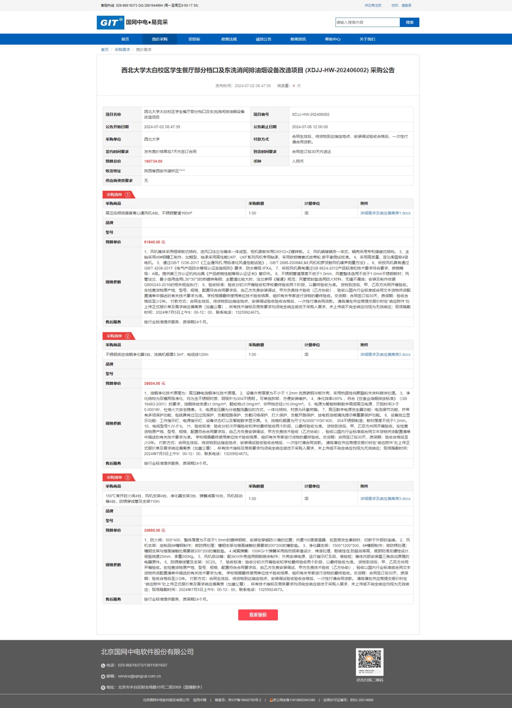 MILAN.COM太白校区学生餐厅部分档口及东洗消间排油烟设备改造项目 (XDJJ-HW-202406002) 竞价采购公告 作者: 编辑:采购与招标办公室 时间:2024-07-02 原公告链接:https://www.ejingcai.com.cn/site/bidding/detail/11377