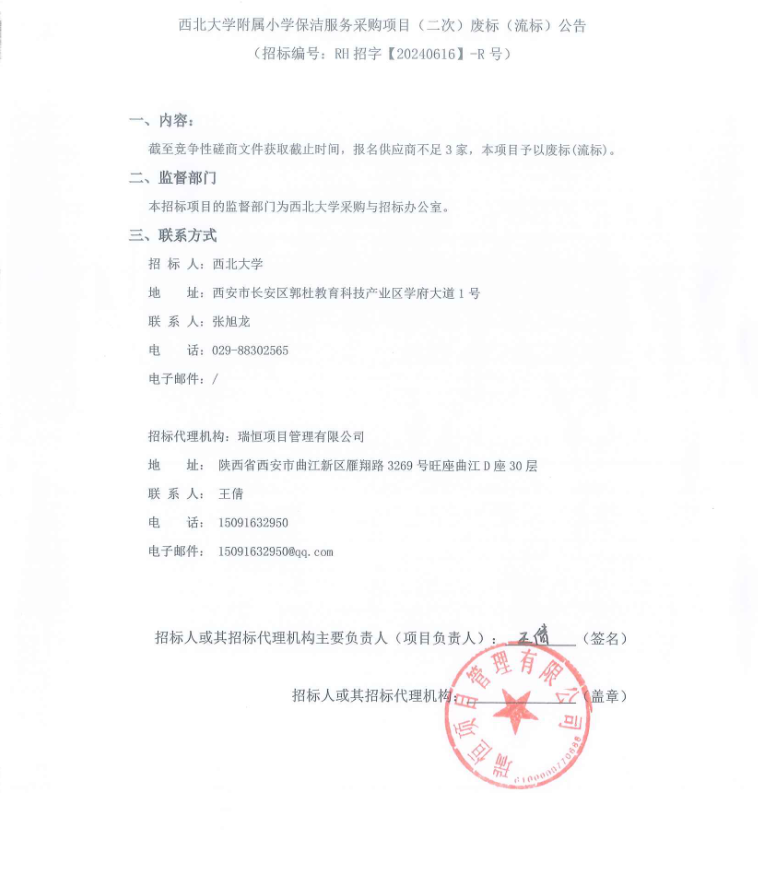 MILAN.COM附属小学保洁服务采购项目(二次)废标(流标)公告