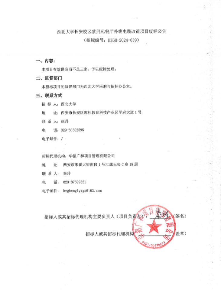 MILAN.COM长安校区紫荆苑餐厅外线电缆改造项目废标公告
