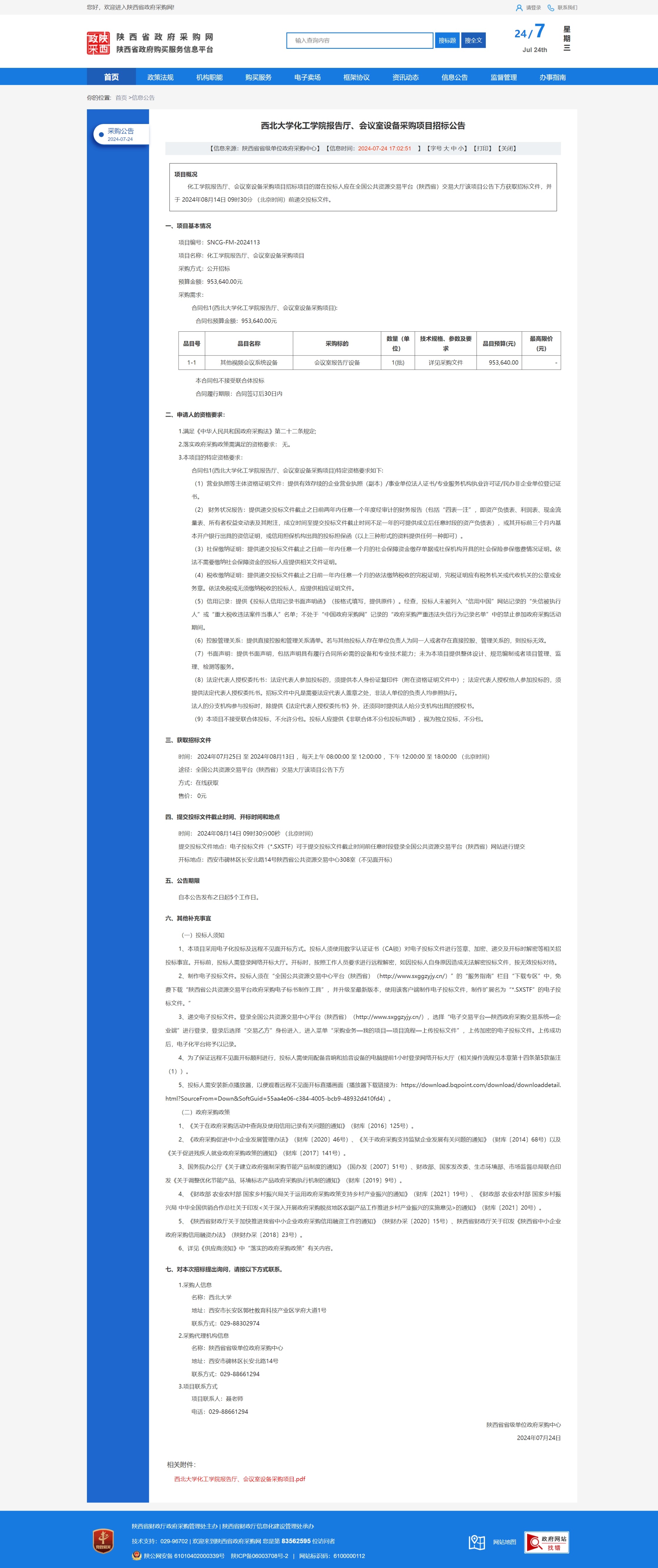 MILAN.COM化工学院报告厅、会议室设备采购项目招标公告 作者: 编辑:采购与招标办公室 时间:2024-07-24 原公告链接:https://www.ccgp-shaanxi.gov.cn/freecms/site/shaanxi/ggxx/info/2024/8a69c43990e021d80190e2424f98406d.html?noticeType=001011¬iceId=9ce13ca5-499d-11ef-b8b6-08c0eb20c666