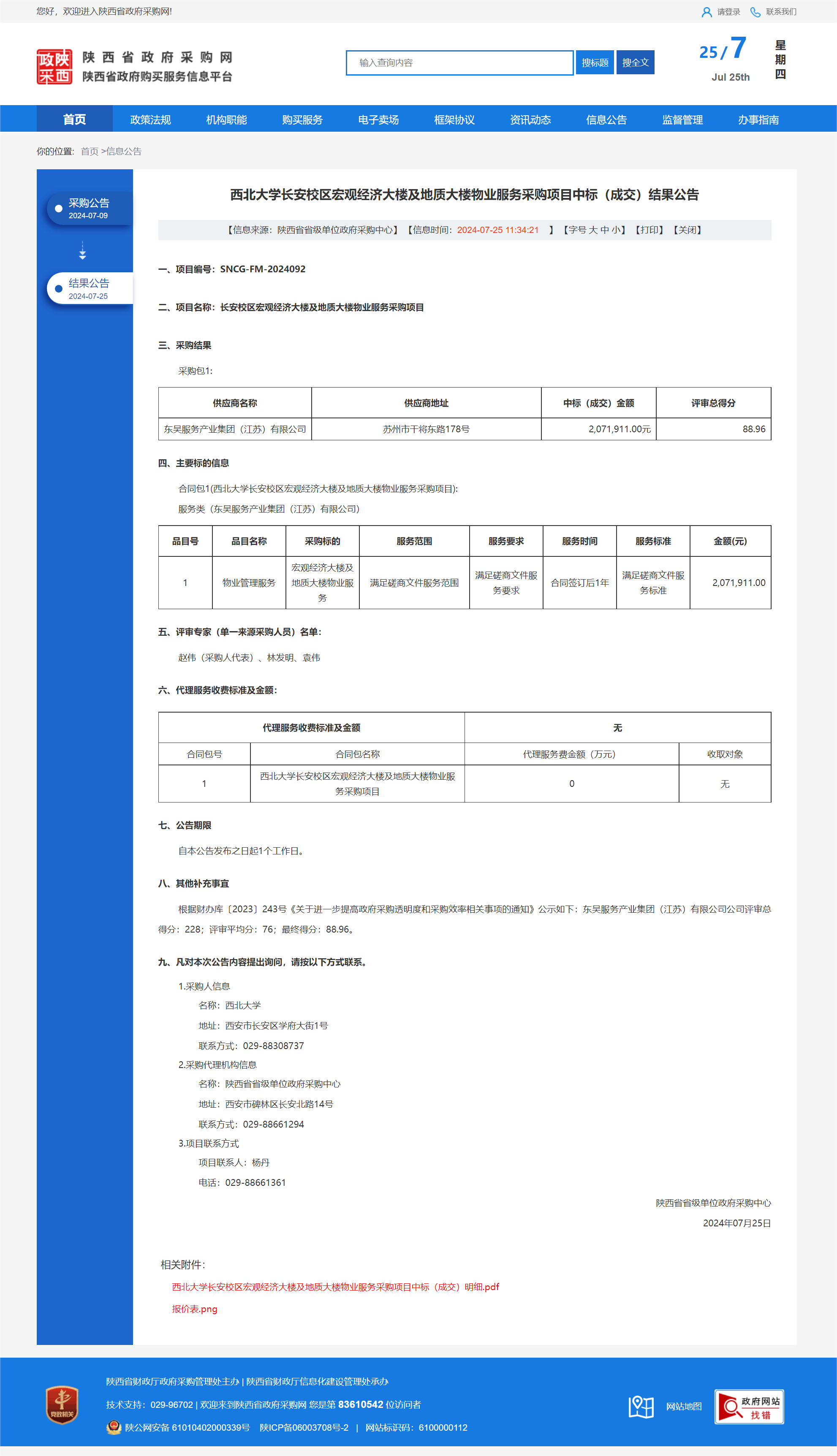 MILAN.COM长安校区宏观经济大楼及地质大楼物业服务采购项目中标(成交)结果公告