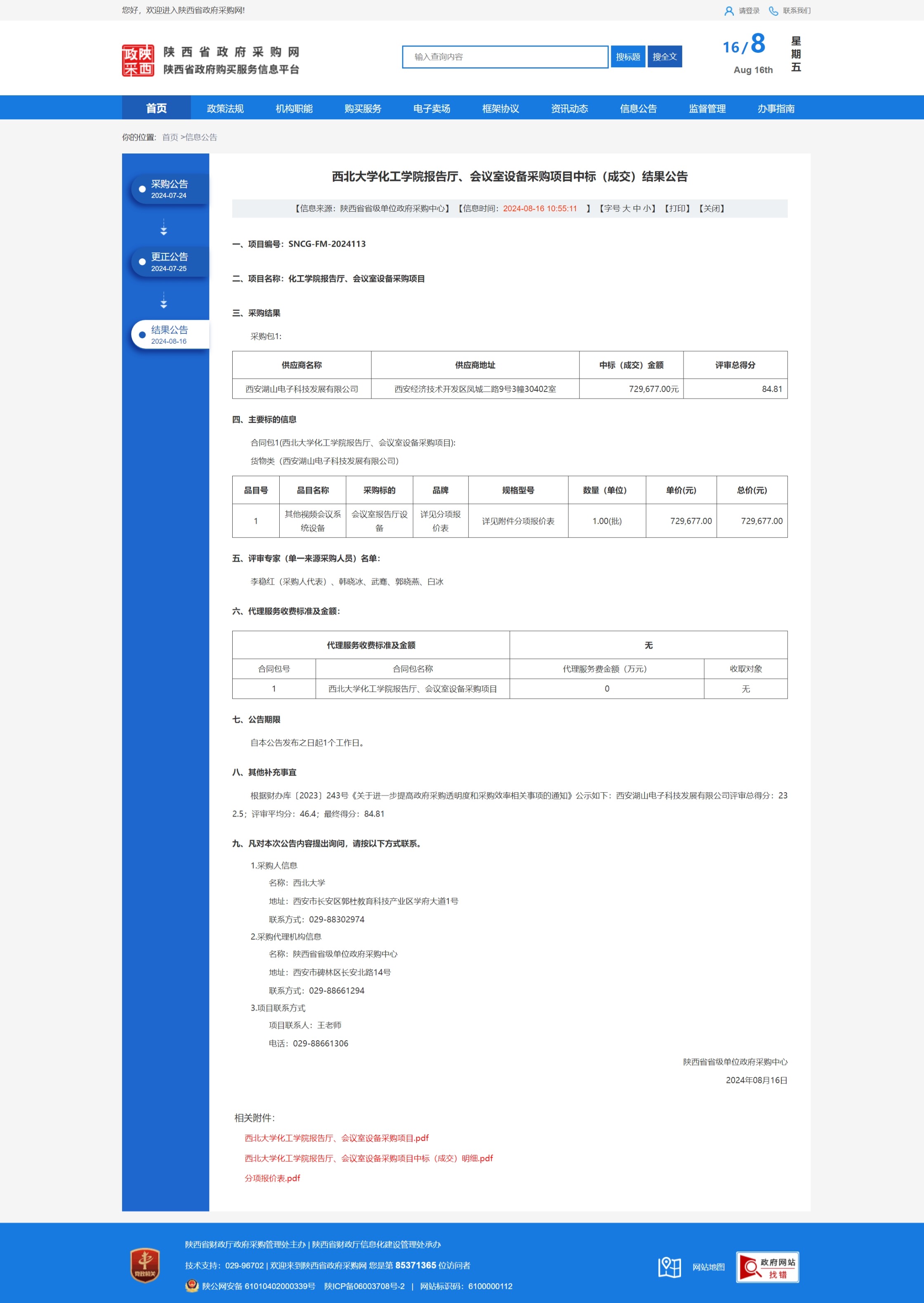 MILAN.COM化工学院报告厅、会议室设备采购项目中标(成交)结果公告 作者: 编辑:采购与招标办公室 时间:2024-08-16 原公告链接:https://www.ccgp-shaanxi.gov.cn/freecms/site/shaanxi/ggxx/info/2024/8a69c24390e5cf8101915546708d7a3e.html?noticeType=001021¬iceId=7a89cfe7-5b7c-11ef-8063-08c0eb20c666