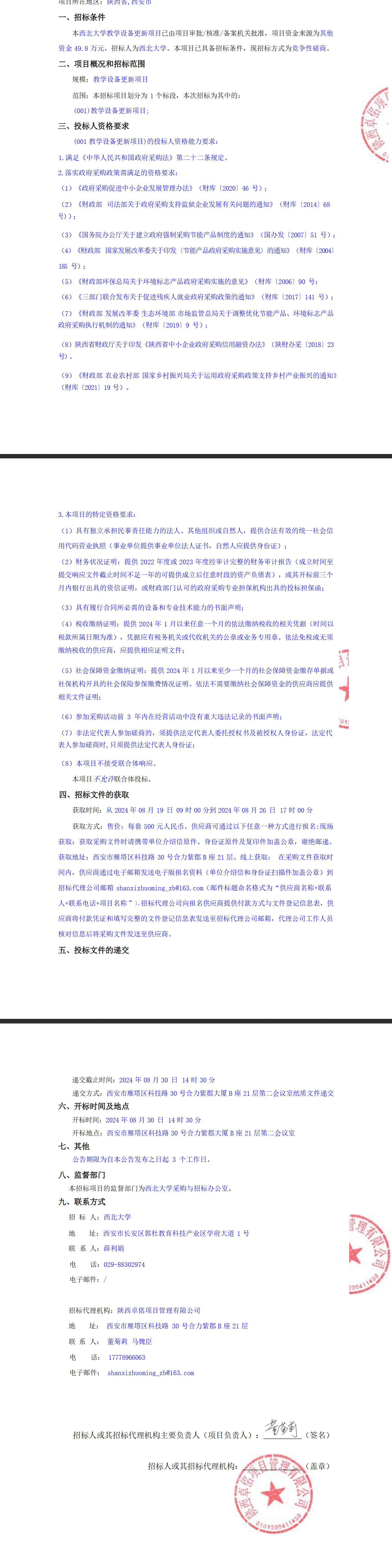MILAN.COM教学设备更新项目竞争性磋商公告 作者: 编辑:薛利娟 时间:2024-08-19 原公告链接:http://bulletin.sntba.com/biddingBulletin/2024-08-19/1724606.html