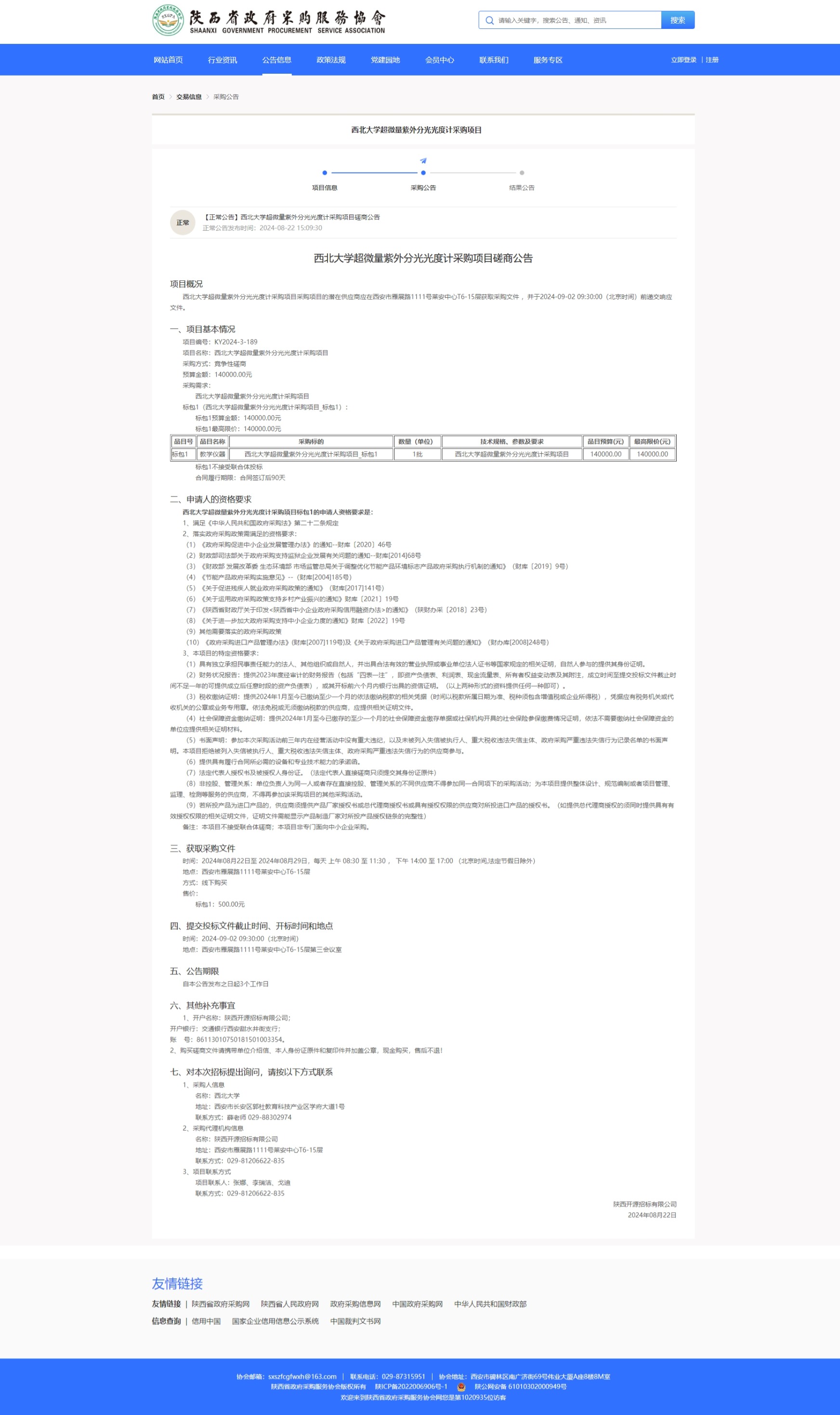 MILAN.COM超微量紫外分光光度计采购项目磋商公告 作者: 编辑:采购与招标办公室 时间:2024-08-23 原公告链接:https://www.sxszfcgfwxh.cn/#/tender-vTradeAnnouncement-anno?tenderProjectId=1826435442958446594&rootId=1549250743389216770