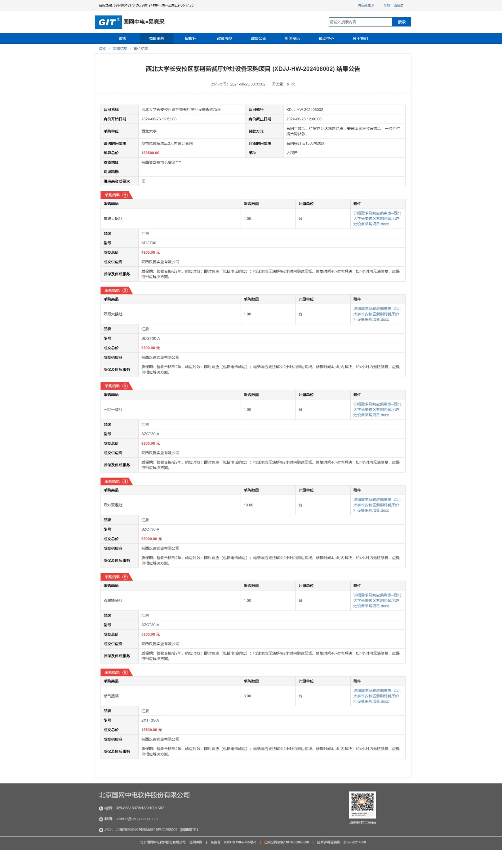 MILAN.COM长安校区紫荆苑餐厅炉灶设备采购项目 (XDJJ-HW-202408002) 竞价结果公告 作者: 编辑:采购与招标办公室 时间:2024-08-29 原公告链接:https://www.ejingcai.com.cn/site/bidding/detail/12244