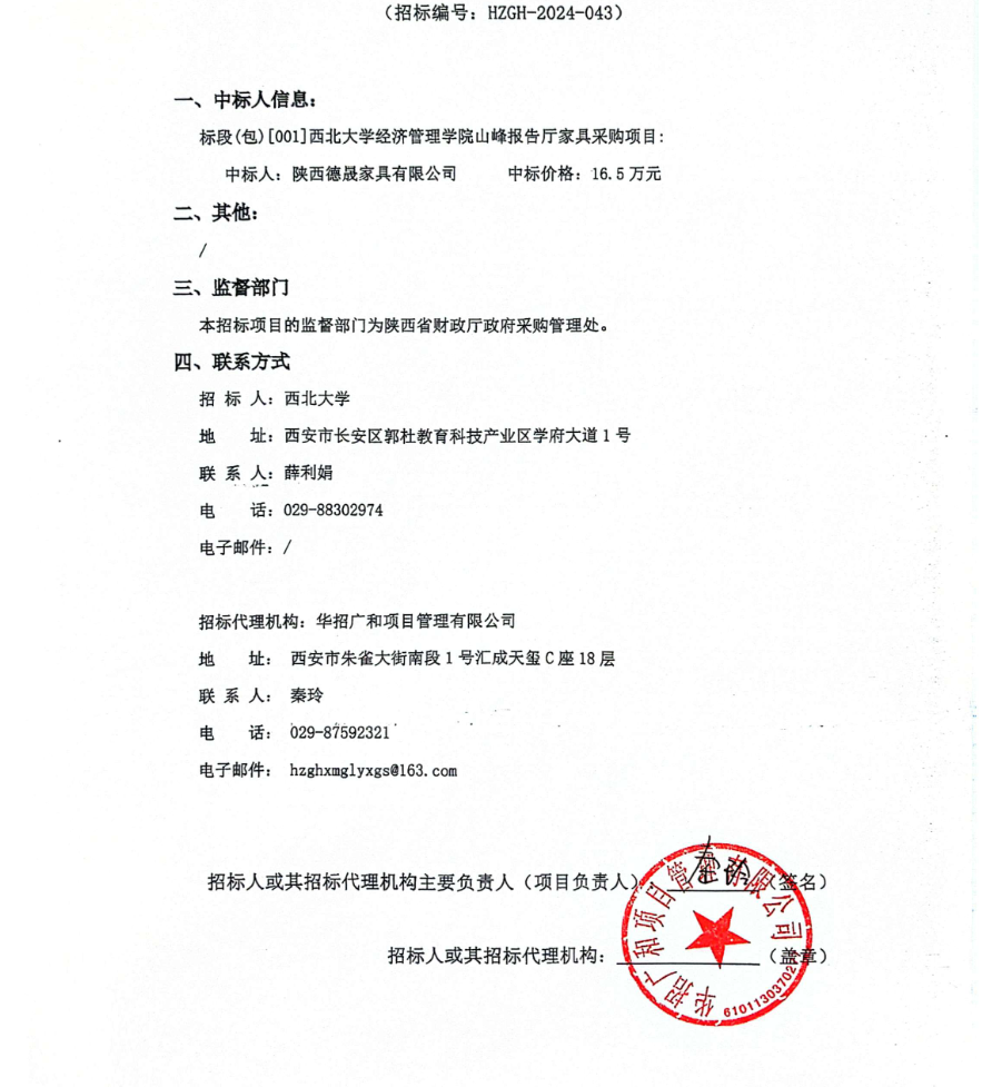 MILAN.COM经济管理学院山峰报告厅家具采购项目成交结果公示 作者: 编辑:采购与招标办公室 时间:2024-08-29 原公告链接:http://bulletin.sntba.com/resultBulletin/2024-08-29/1757879.html