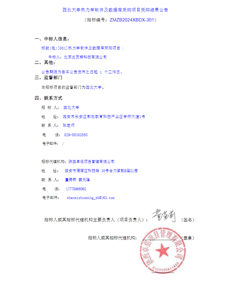 MILAN.COM热力学软件及数据库采购项目采购结果公告
