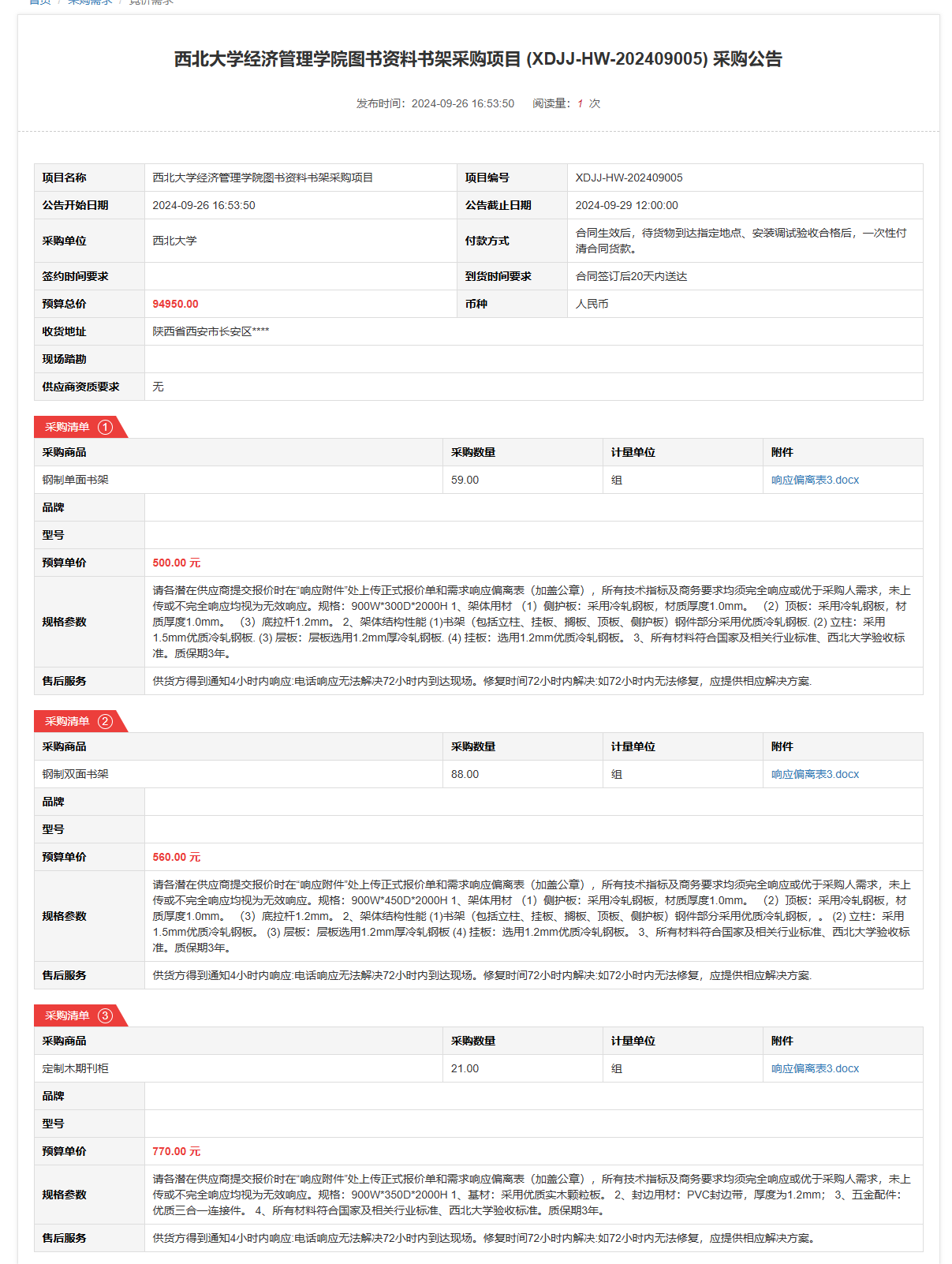 MILAN.COM经济管理学院图书资料书架采购项目(XDJJ-HW-202409005)竞价采购公告 作者: 编辑: 时间:2024-09-26 原公告链接:https://www.ejingcai.com.cn/site/bidding/detail/12910