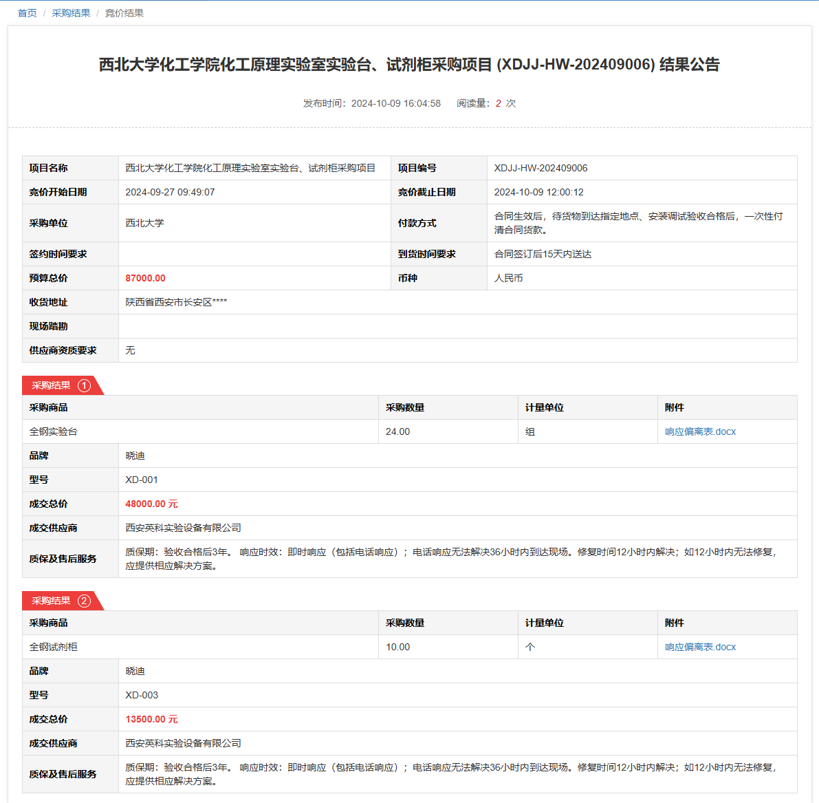 MILAN.COM化工学院化工原理实验室实验台、试剂柜采购项目(XDJJ-HW-202409006)竞价结果公告 作者: 编辑: 时间:2024-10-09 原公告链接:https://www.ejingcai.com.cn/site/bidding/detail/13139