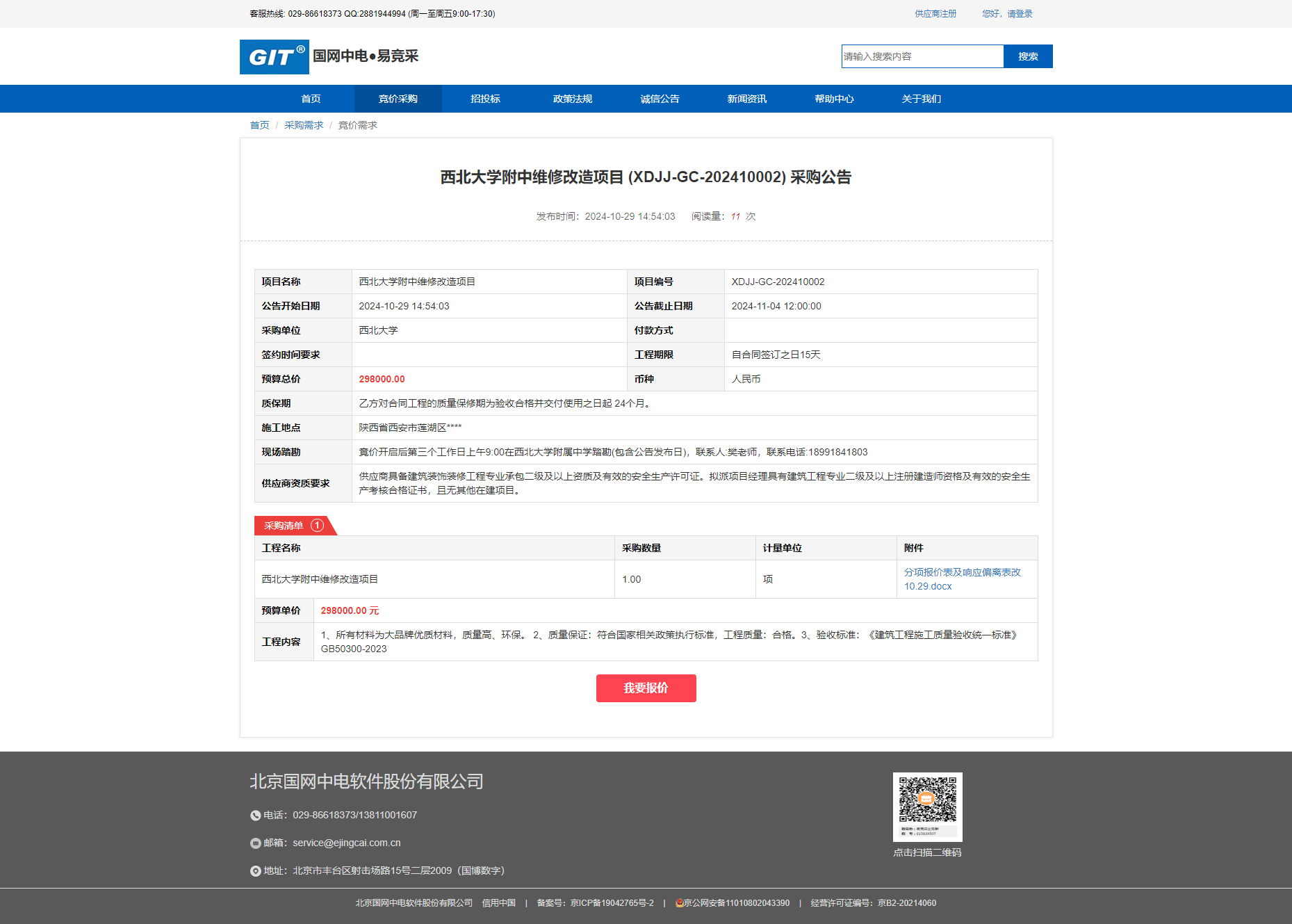 MILAN.COM附中维修改造项目 (XDJJ-GC-202410002) 采购公告