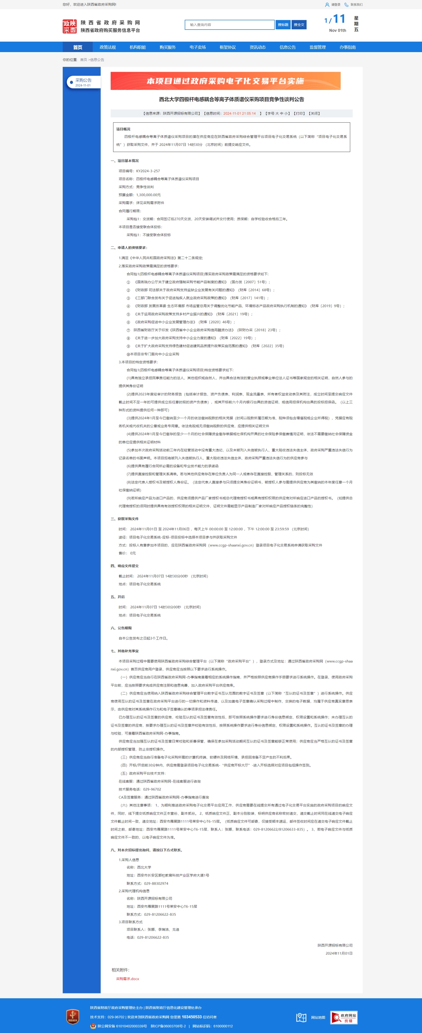 MILAN.COM四极杆电感耦合等离子体质谱仪采购项目竞争性谈判公告 作者: 编辑: 时间:2024-11-01 原公告链接:https://www.ccgp-shaanxi.gov.cn/freecms/site/shaanxi/ggxx/info/2024/8a69c95d921859f00192e7ce7e513766.html?noticeType=001013¬iceId=7b217d2a-9853-11ef-8063-08c0eb20c666