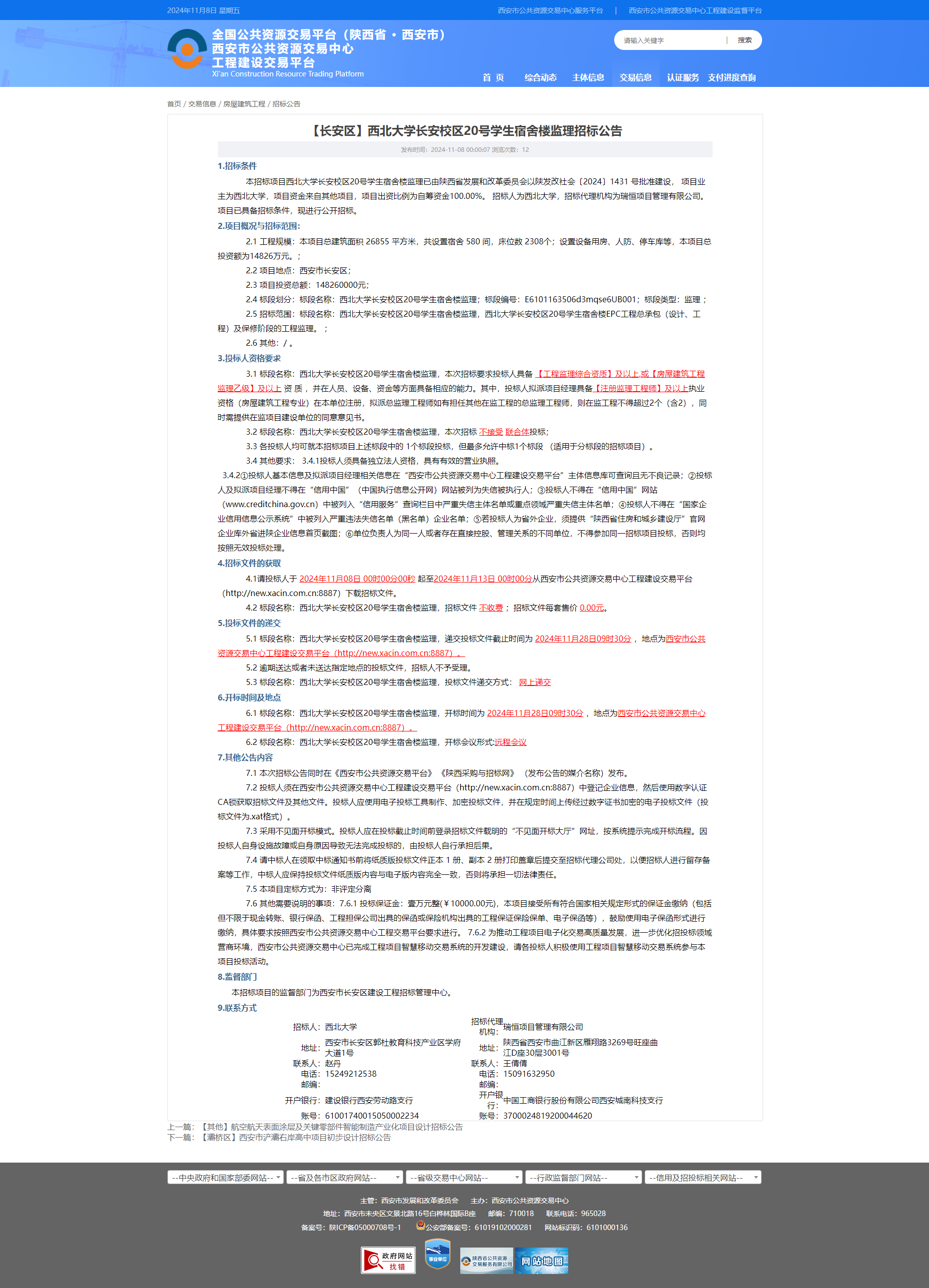 MILAN.COM长安校区20号学生宿舍楼监理招标公告