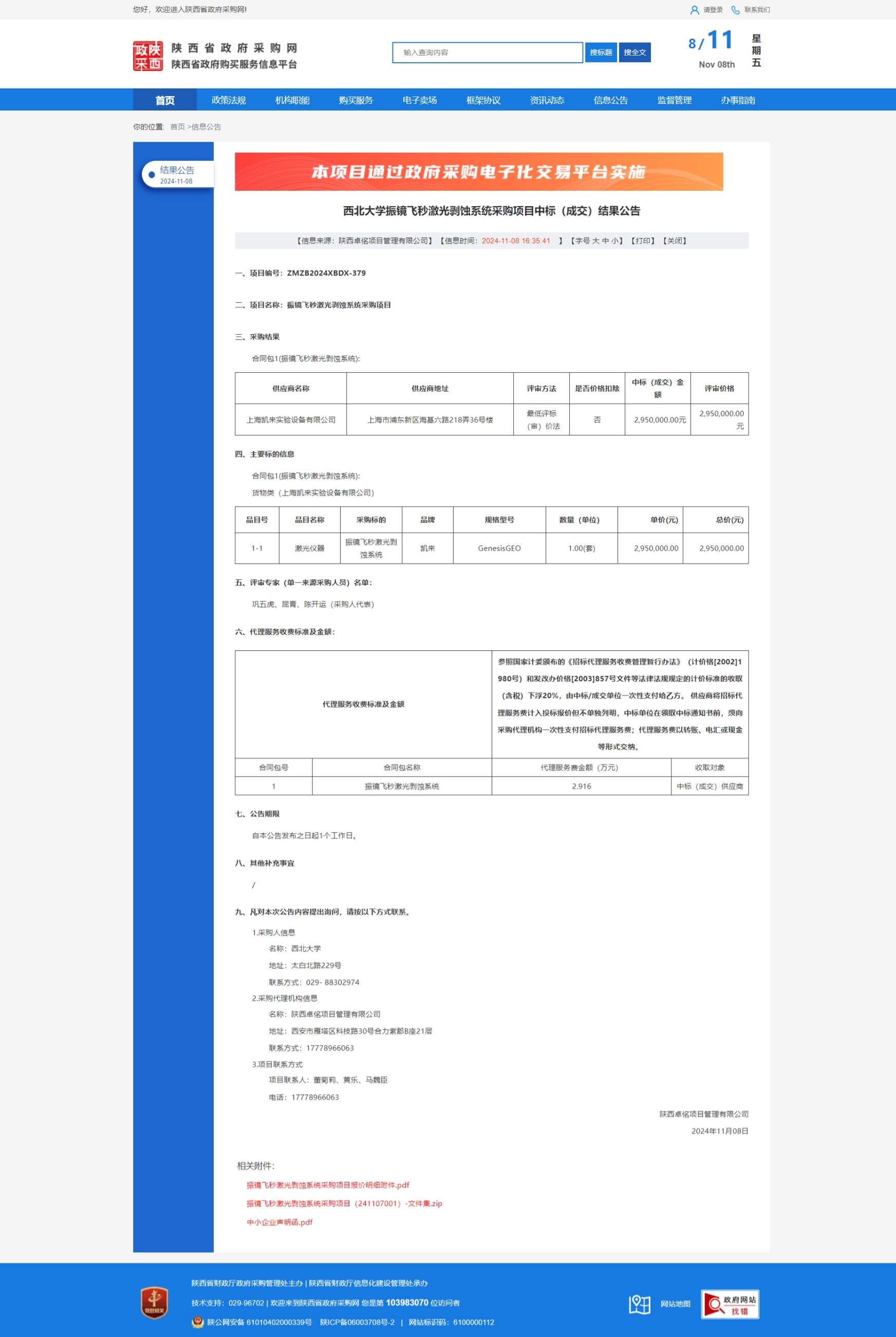 MILAN.COM振镜飞秒激光剥蚀系统采购项目中标(成交)结果公告 作者: 编辑:采购与招标办公室 时间:2024-11-08 原公告链接:https://www.ccgp-shaanxi.gov.cn/freecms/site/shaanxi/ggxx/info/2024/8a69c95d921859f001930ad889f25d3c.html?noticeType=001025¬iceId=fea4603f-9dad-11ef-8063-08c0eb20c666