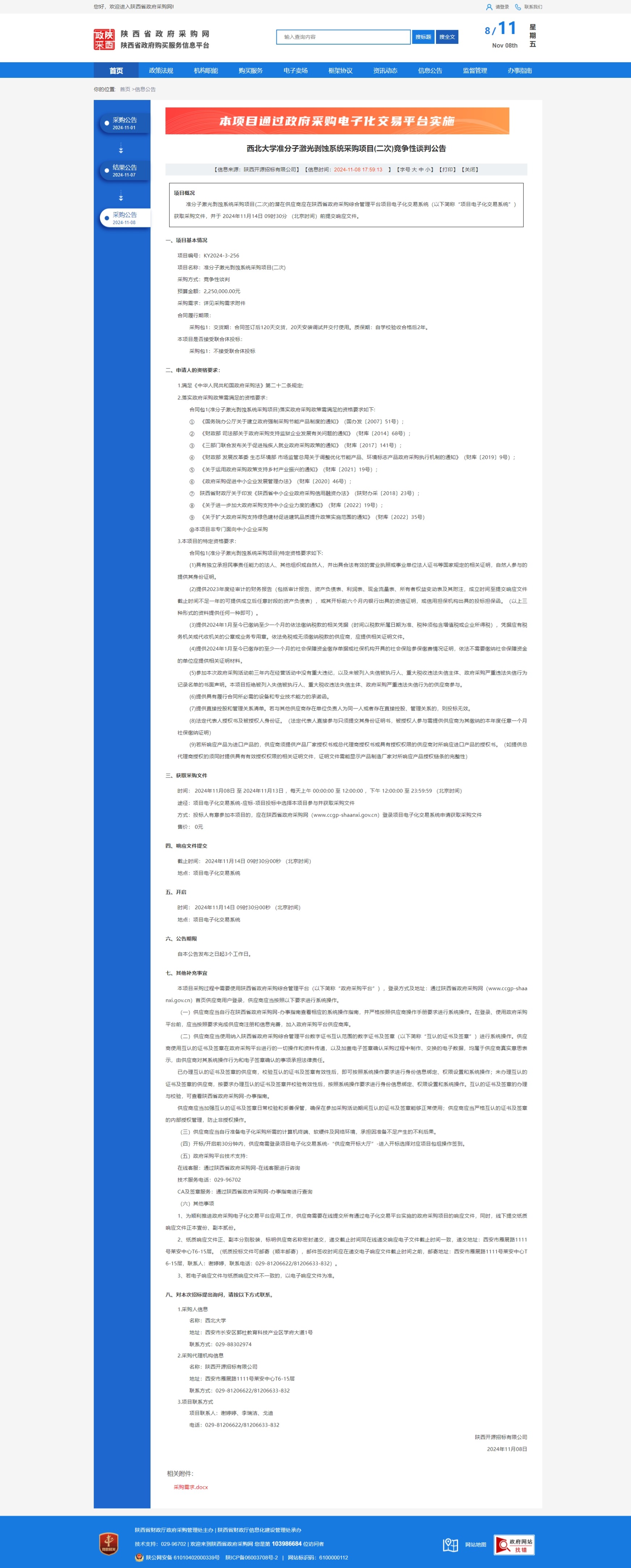 MILAN.COM准分子激光剥蚀系统采购项目(二次)竞争性谈判公告 作者: 编辑:薛利娟 时间:2024-11-08 原公告链接:https://www.ccgp-shaanxi.gov.cn/freecms/site/shaanxi/ggxx/info/2024/8a69c44e9218572b01930b11a18f0bb4.html?noticeType=001013¬iceId=aa4ef12c-9db9-11ef-8063-08c0eb20c666