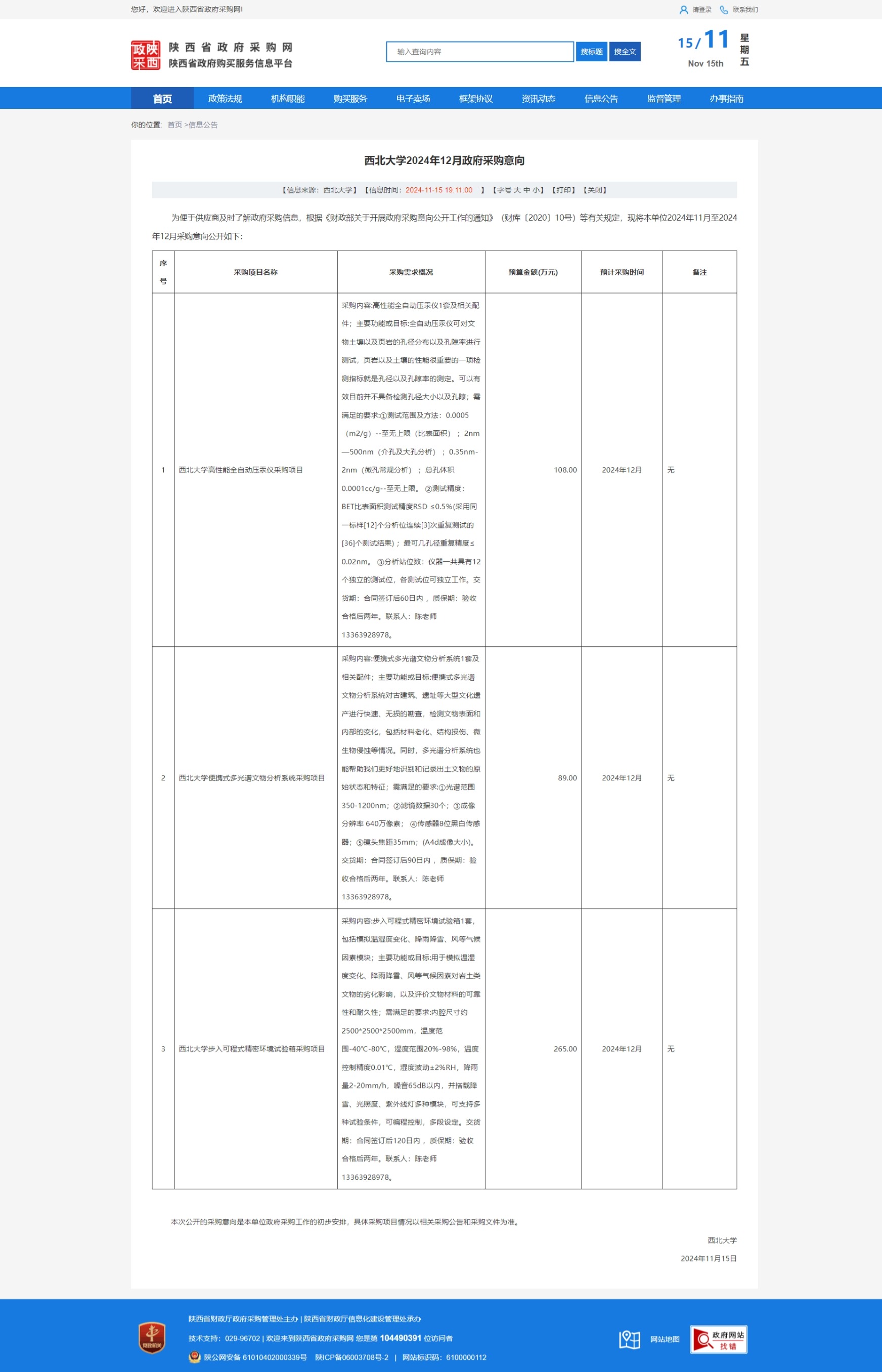 MILAN.COM2024年12月政府采购意向(丝绸之路文化遗产保护实验平台2) 作者: 编辑:薛利娟 时间:2024-11-15 原公告链接:https://www.ccgp-shaanxi.gov.cn/freecms/site/shaanxi/ggxx/info/2024/8a69c037932429a301932f7f7f544a1e.html?noticeType=59¬iceId=dd1c3365-a343-11ef-8063-08c0eb20c666