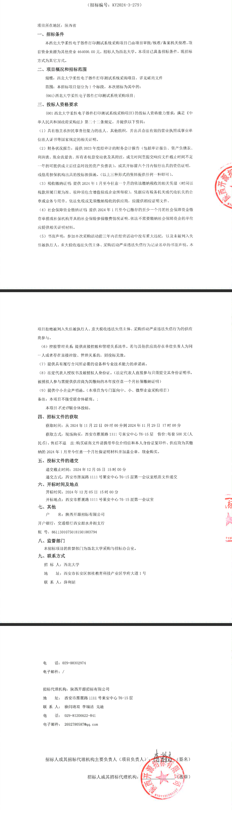 MILAN.COM柔性电子器件打印测试系统采购项目竞争性磋商公告 作者: 编辑:薛利娟 时间:2024-11-22 原公告链接:http://bulletin.sntba.com/biddingBulletin/2024-11-22/1987895.html