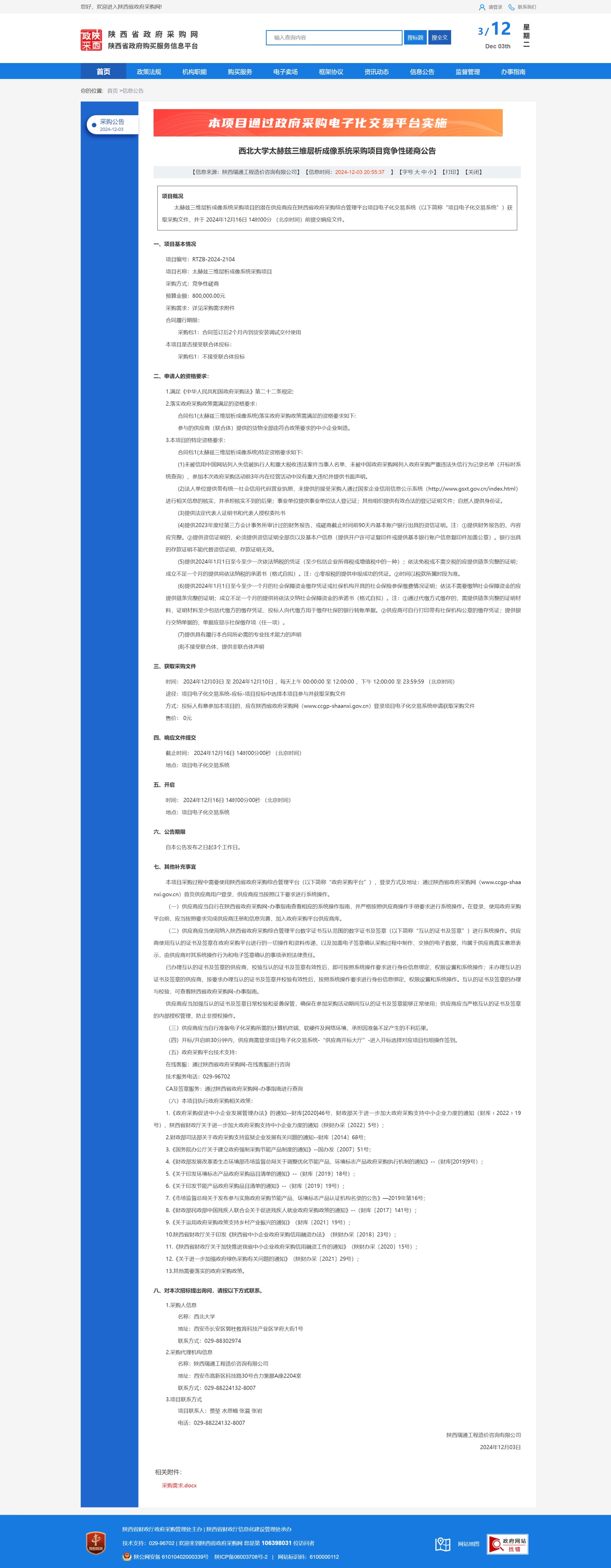 MILAN.COM太赫兹三维层析成像系统采购项目竞争性磋商公告 作者: 编辑:薛利娟 时间:2024-12-03 原公告链接:https://www.ccgp-shaanxi.gov.cn/freecms/site/shaanxi/ggxx/info/2024/8a69c95d921859f001938c91d623402a.html?noticeType=001016¬iceId=7f0f6e3e-b177-11ef-8063-08c0eb20c666