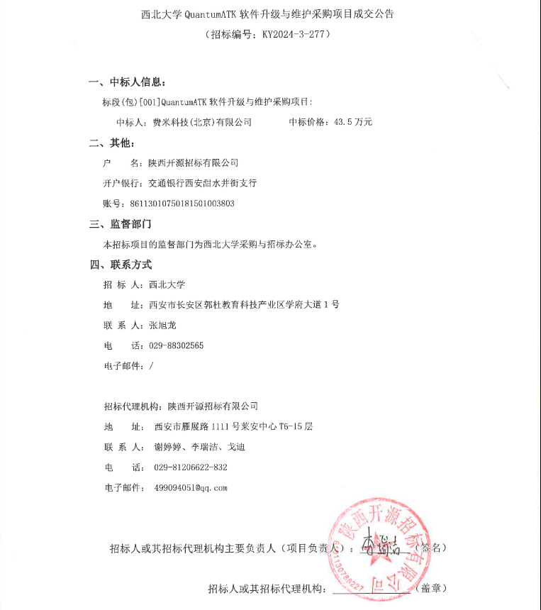 MILAN.COMQuantumATK软件升级与维护采购项目成交公告