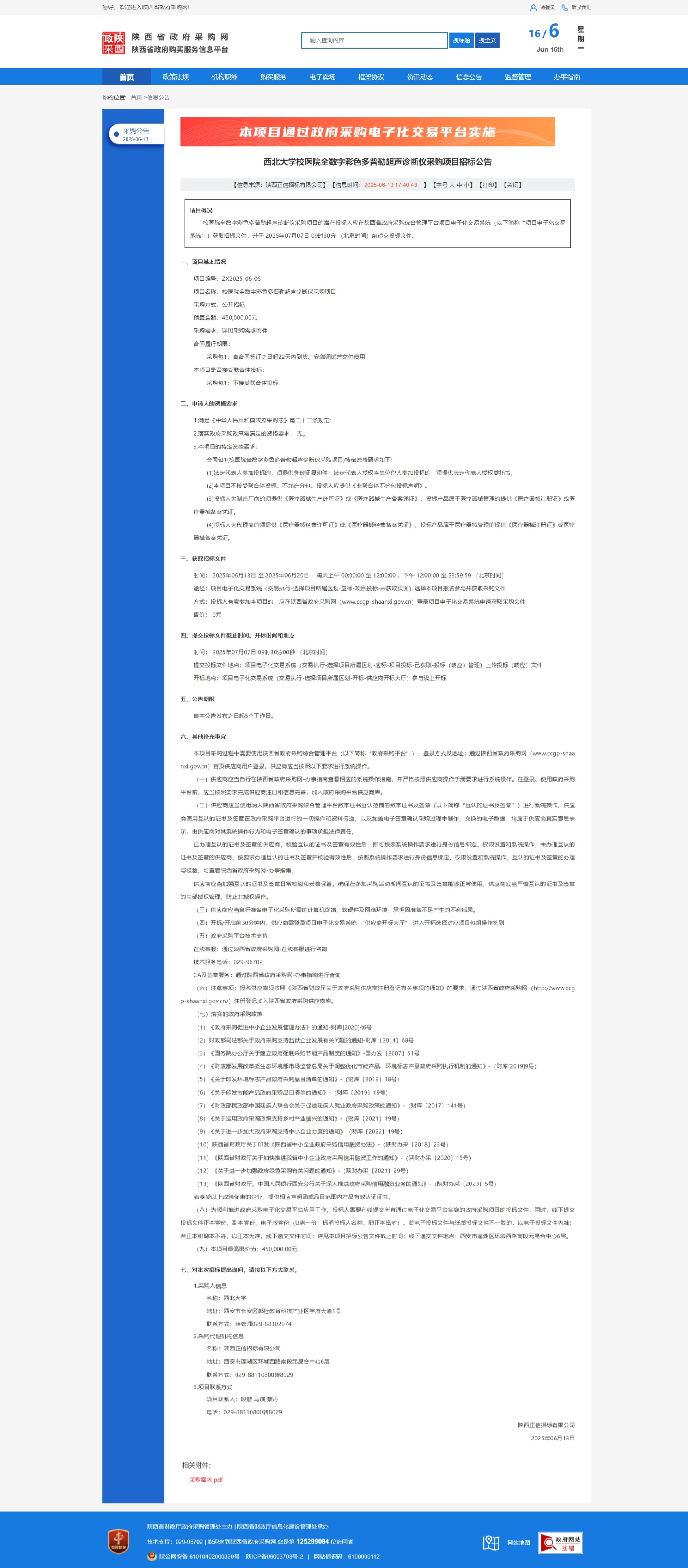 MILAN.COM校医院全数字彩色多普勒超声诊断仪采购项目招标公告 作者: 编辑:采购与招标办公室 时间:2025-06-16 原公告链接:https://www.ccgp-shaanxi.gov.cn/freecms/site/shaanxi/ggxx/info/2025/8a69c6749714a43701976892e3823fce.html?noticeType=001011¬iceId=6edbc741-483c-11f0-8063-08c0eb20c666