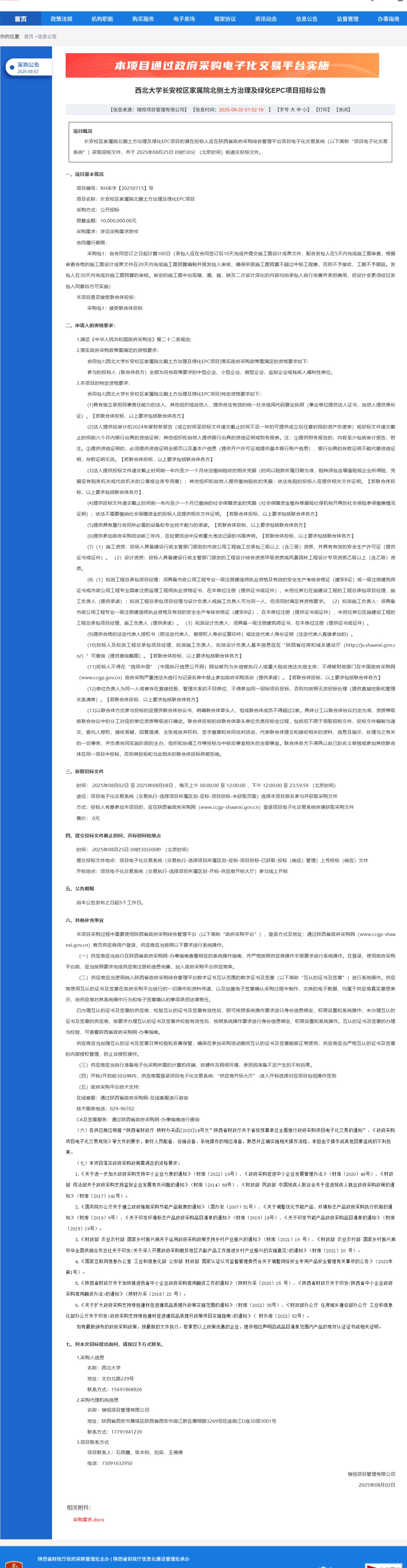 MILAN.COM长安校区家属院北侧土方治理及绿化EPC项目招标公告 作者: 编辑:党丹珩 时间:2025-08-02 公告地址:http://www.ccgp-shaanxi.gov.cn/freecms/site/shaanxi/ggxx/info/2025/8a69c7f19860ef060198668ebf817f37.html?noticeType=001011¬iceId=537d203b-6efb-11f0-8063-08c0eb20c666