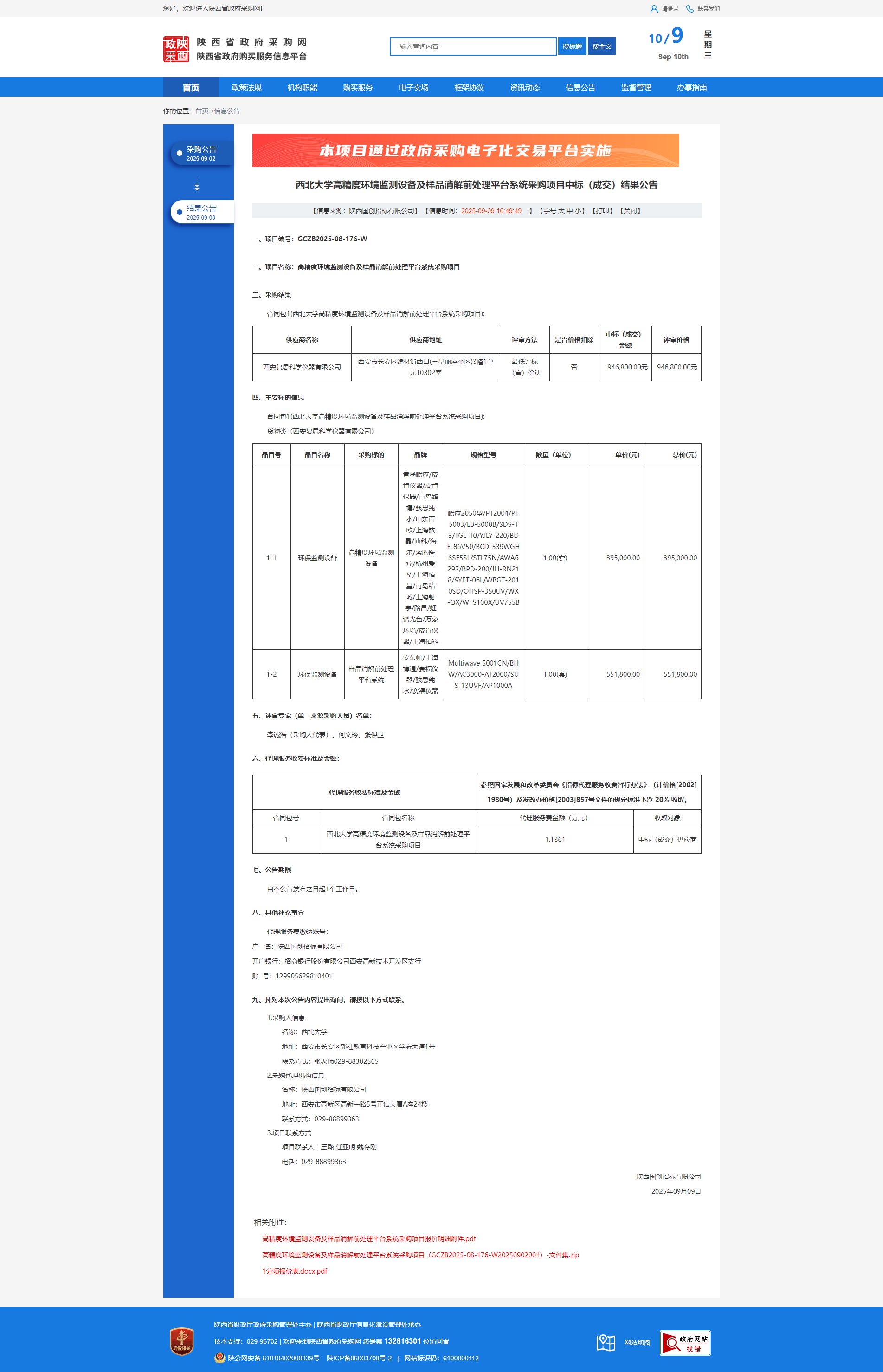 MILAN.COM高精度环境监测设备及样品消解前处理平台系统采购项目中标(成交)结果公告