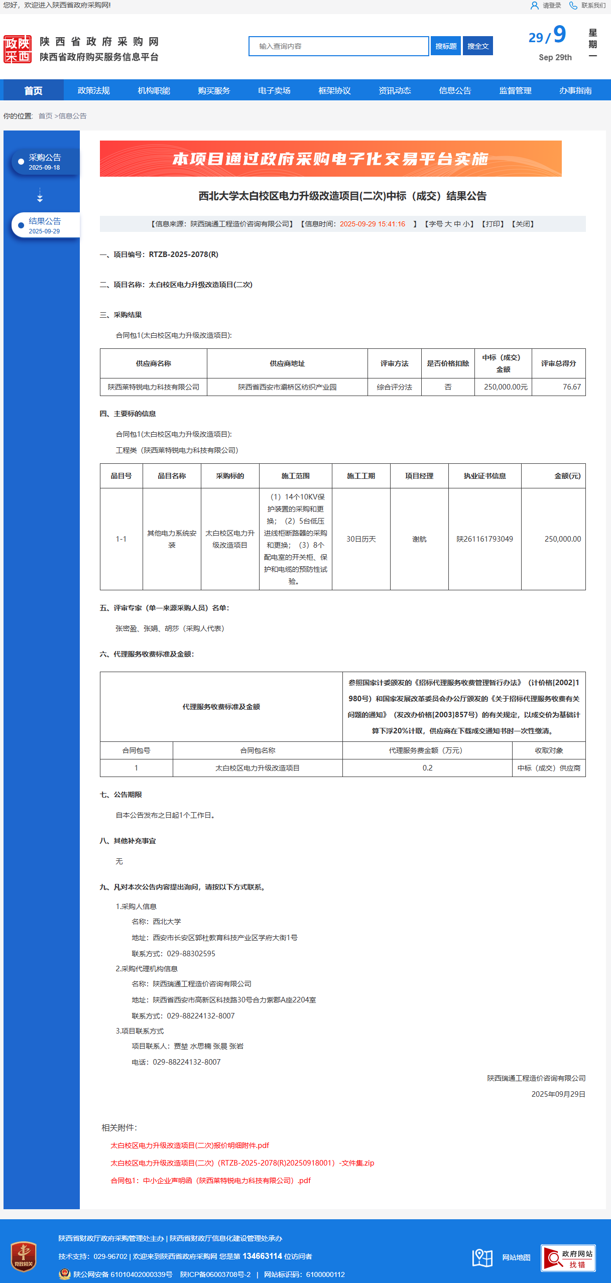 MILAN.COM太白校区电力升级改造项目(二次)中标(成交)结果公告