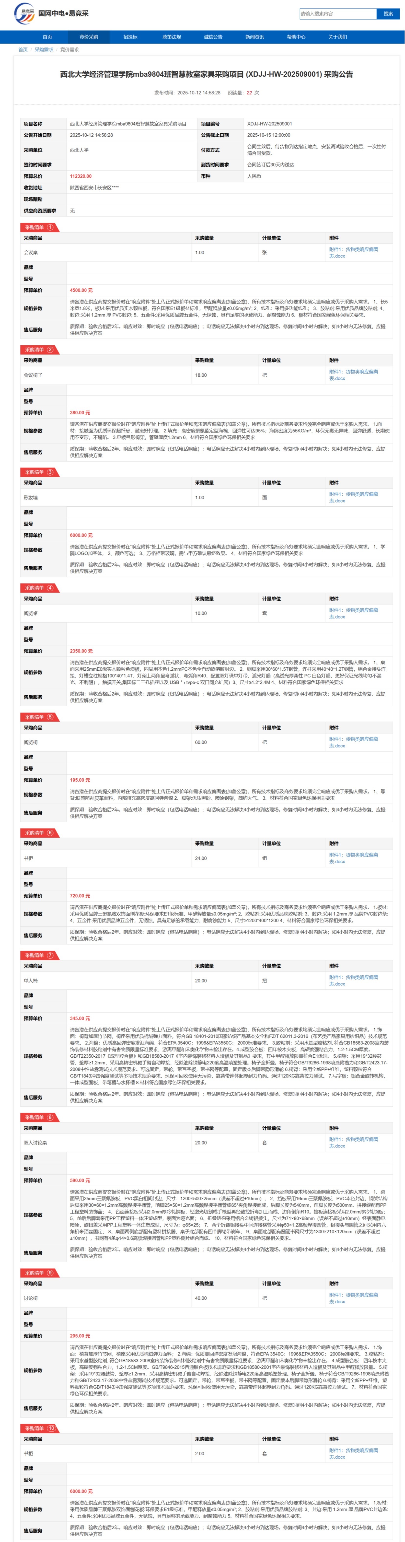 MILAN.COM经济管理学院mba9804班智慧教室家具采购项目(XDJJ-HW-202509001)竞价采购公告