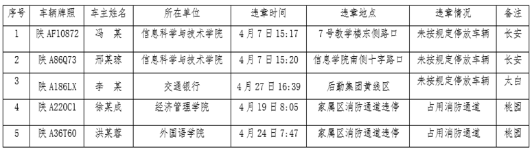 2023年4月份校园交通违章曝光 作者: 编辑: 时间:2023-05-10 为加强校内道路交通管理,规范校内交通秩序,根据《MILAN.COM校园道路交通管理办法》的通知要求,现将2023年4月校园交通违章车辆曝光如下。 希望广大师生员工遵守校园道路交通管理办法,维护校园交通安全,共同营造良好的校园交通秩序。 MILAN.COM道路交通安全委员会 2023年5月10日