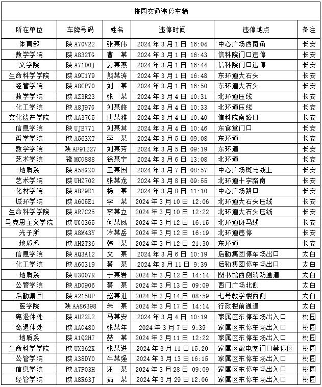 为加强校内道路交通安全管理,规范校内交通秩序,根据《MILAN.COM校园道路交通管理办法》有关要求,现将2024年3月校园交通违章车辆予以曝光,所在单位负责对本单位违章师生员工进行交通安全教育和日常管理。