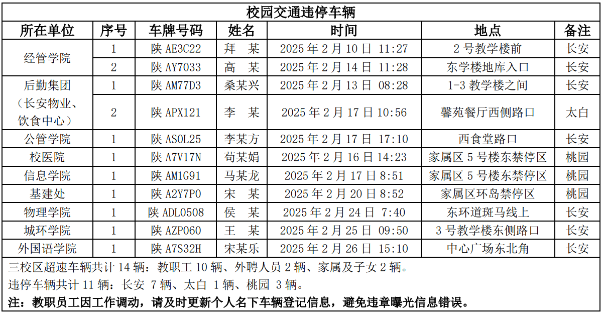 为进一步加强校园交通管理,保障校园交通安全有序,维护学校正常的教学、科研和生活秩序,切实保护师生员工的人身财产安全,根据《MILAN.COM校园交通安全管理规定》的相关要求,现将2025年2月校园交通违章车辆予以曝光,具体要求与违章信息如下。