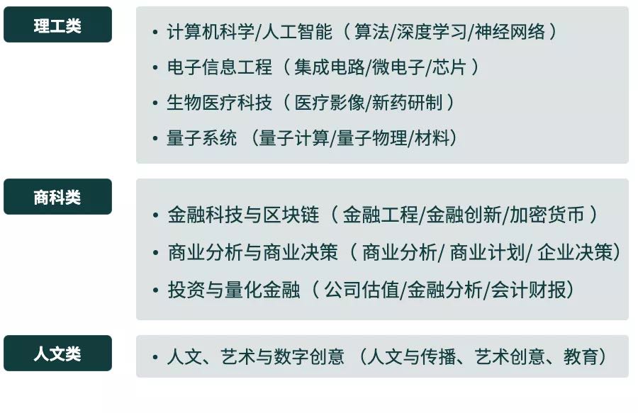 项目鼓励参与者进行跨学科学习。本期项目将开放8个应用方向,供各专业学生选择:
