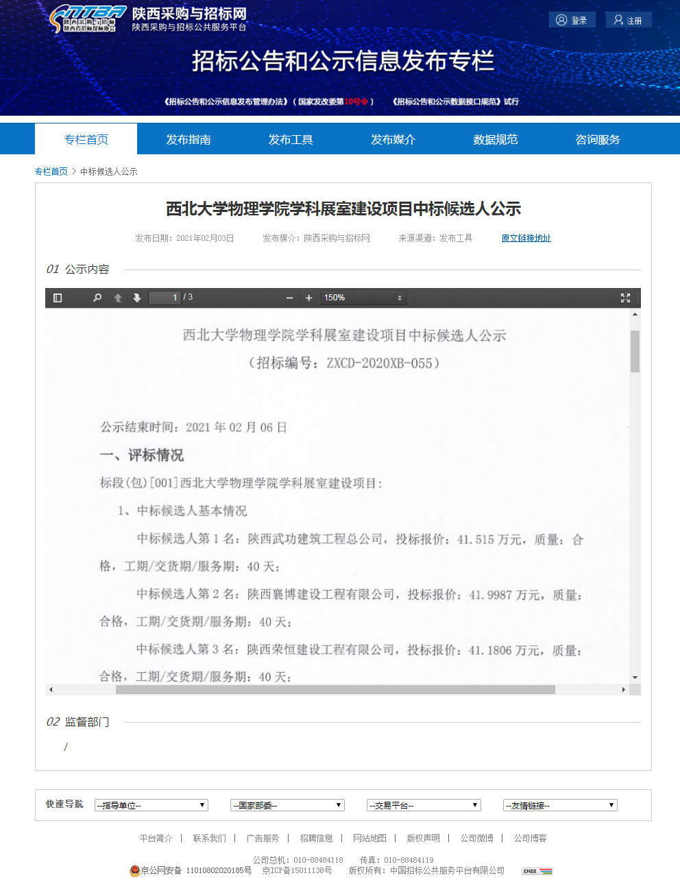 MILAN.COM物理学院学科展室建设项目中标候选人公示 作者: 编辑:郭平 时间:2021-02-03 http://bulletin.sntba.com/candidateBulletin/2021-02-03/269328.html