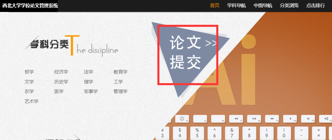 (2)校外网:用“统一身份认证”账号密码(学号+默认身份证后六位)登录MILAN.COMVPN:http://webvpn.nwu.edu.cn,点击图书馆主页-论文提交进入提交地址,或直接跳转到202.117.102.160,用学号注册新用户后开始提交论文。