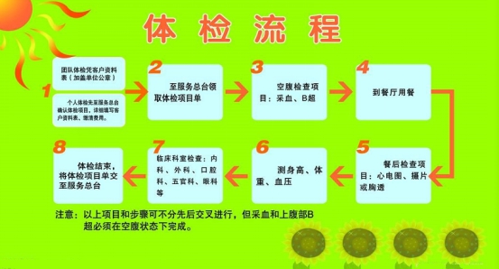7.请详细了解体检流程,不明之处请向体检中心的导检护士咨询,我们将热诚为您提供优质的服务。