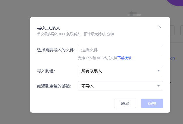 登录新版邮箱后,依次点击“通讯录”->“导入/导出”->“导入联系人”->选择下载的通讯录文件,点击“确定”。