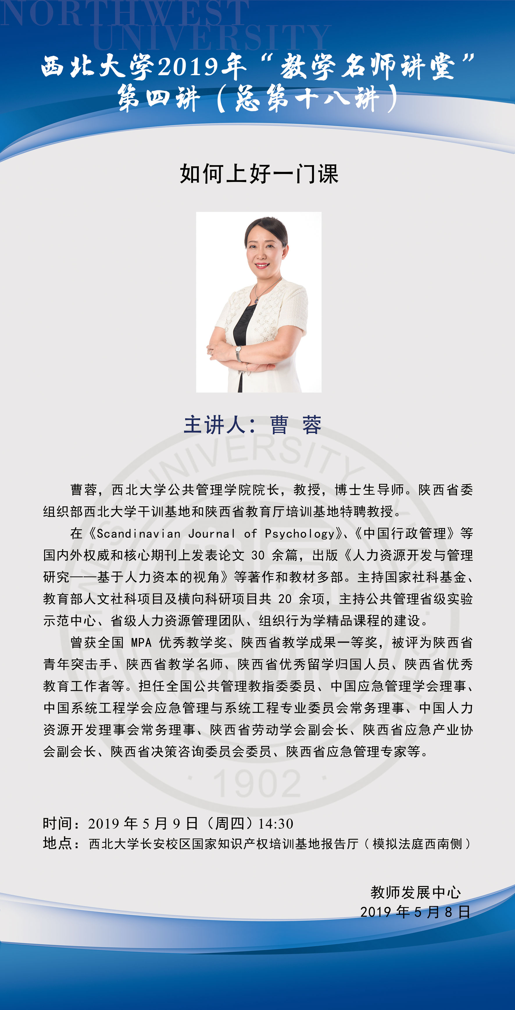 2019年教学名师讲堂第四讲 - 如何上好一门课