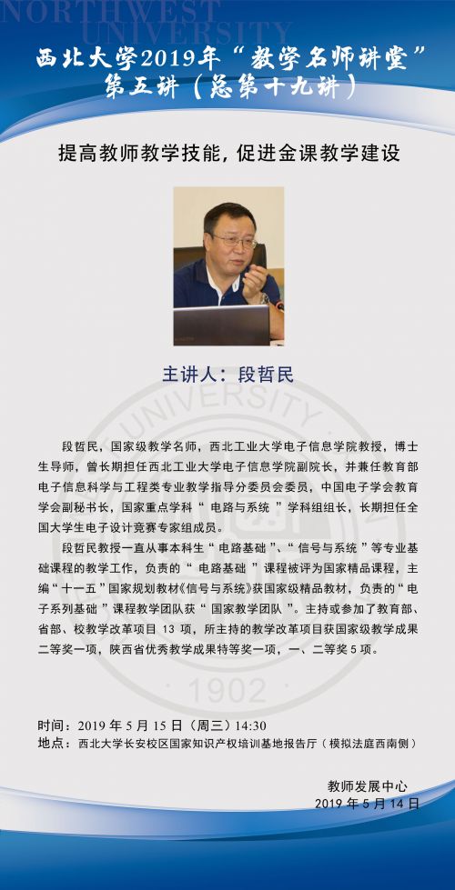2019年教学名师讲堂第五讲 - 提高教师教学技能,促进金课教学建设