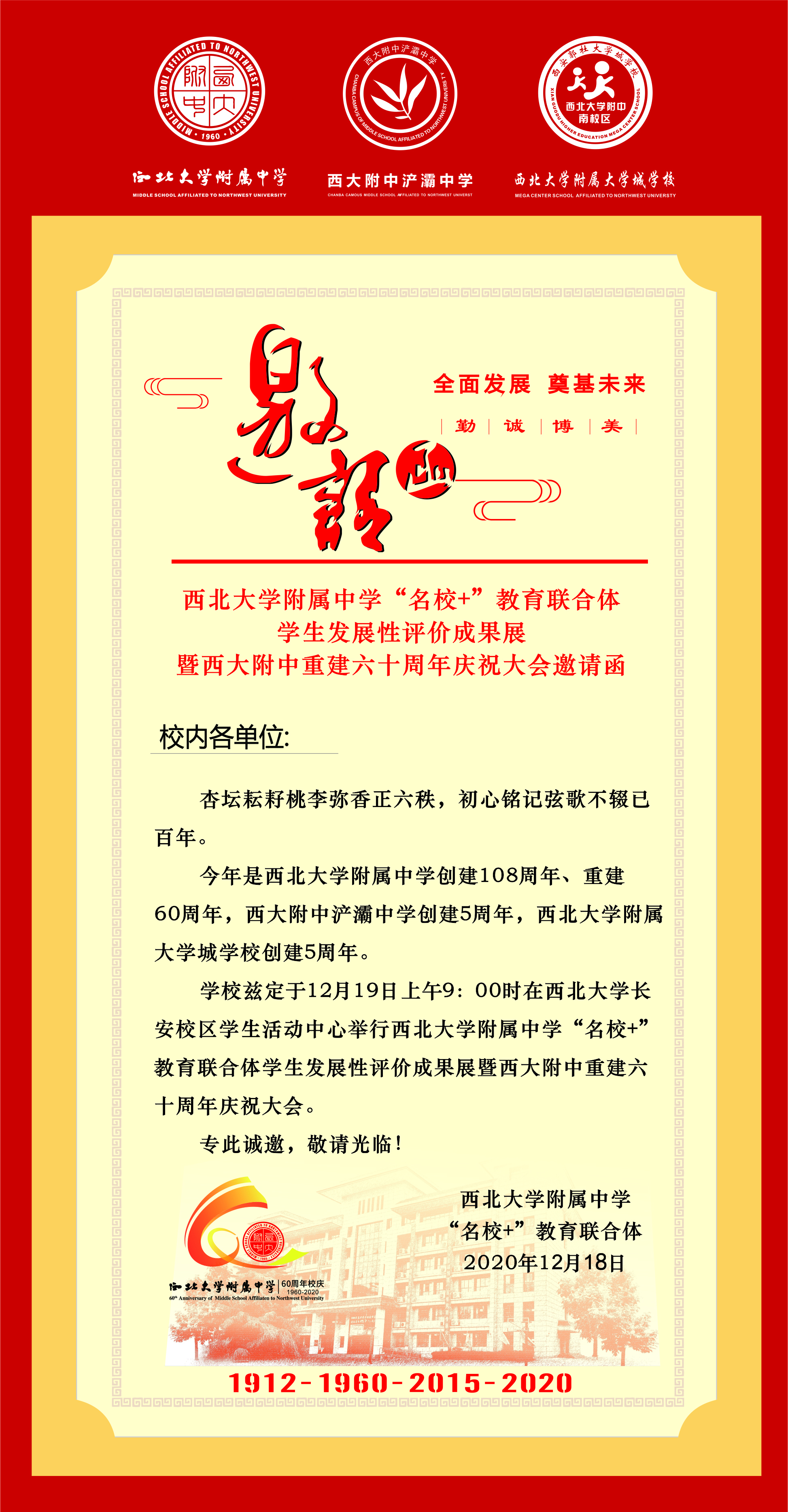 MILAN.COM附属中学“名校+”教育联合体学生发展性评价成果展暨西大附中重建60周年庆祝大会公告